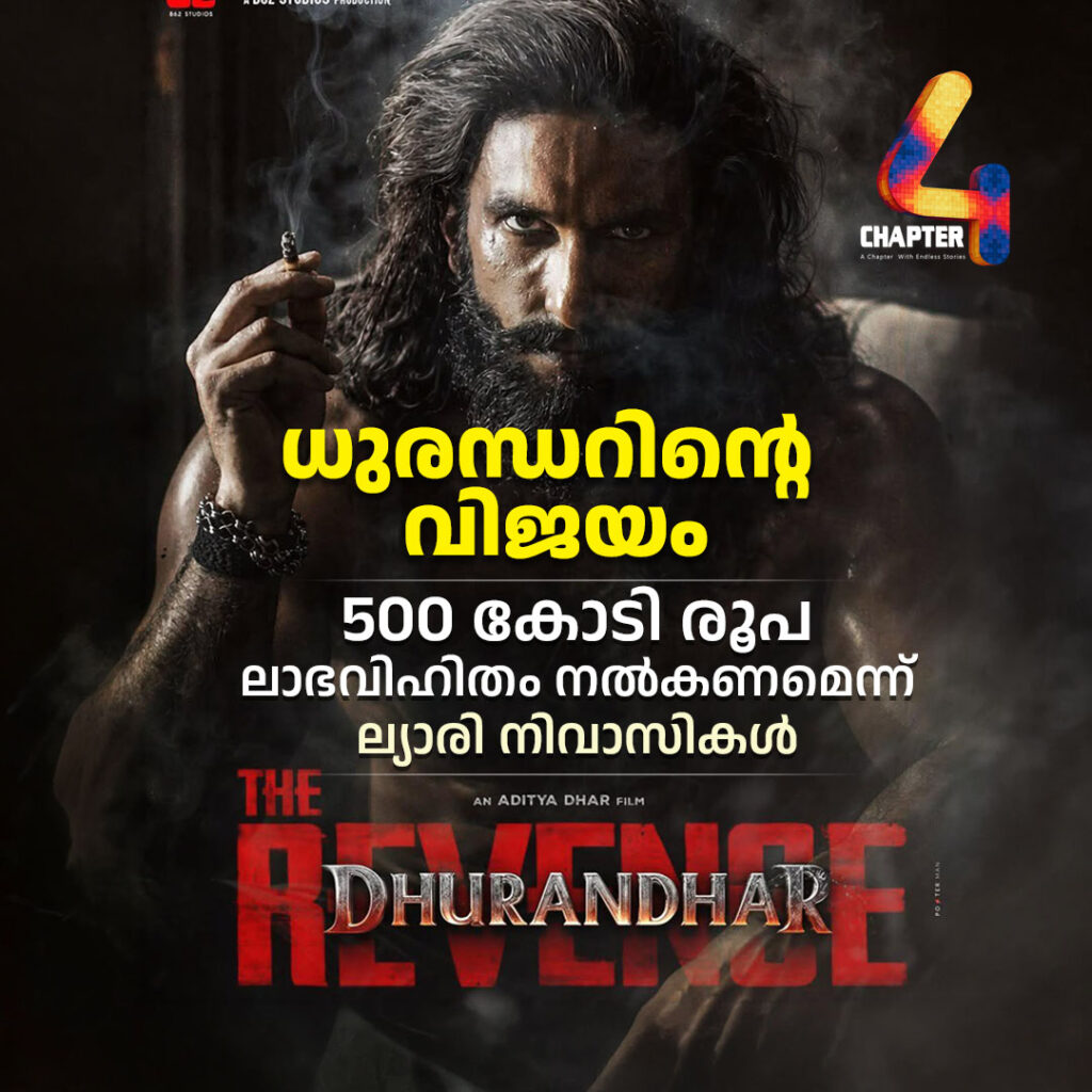 ധുരന്ധറിന്റെ ലാഭവിഹിതത്തില് നിന്ന് 500 കോടി റോഡ് നന്നാക്കാന് നല്കണം; ആവശ്യവുമായി ല്യാരി നിവാസികള്